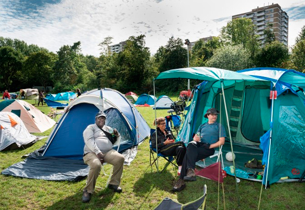 Como su nombre lo refleja, De Buurtcamping es el campamento de la comunidad, un evento anual en el que los ciudadanos toman sus parques y los habitan temporalmente. Lo más interesante de este proyecto, es el reforzamiento del sentido de comunidad que fomenta, ya que, desde exitosos empresarios hasta jóvenes, adultos mayores y personas sin hogar, coexisten en un mismo espacio.