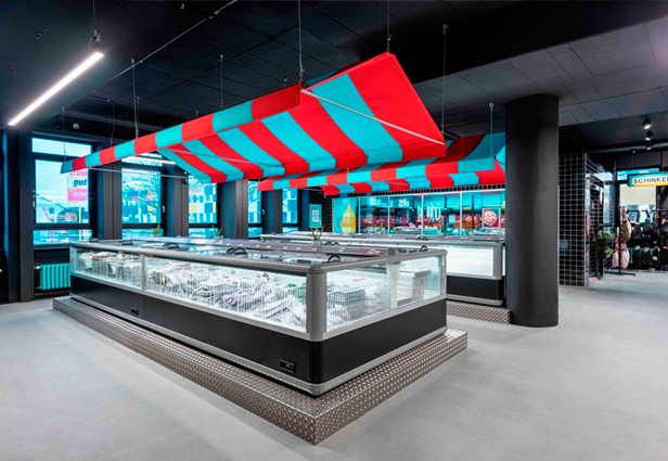 Diseñado por el estudio creativo Masquespacio, este supermercado de 500 metros cuadrados propone un look súper colorido que busca reflejar el concepto de la felicidad española. Por otro lado, el espacio también cuenta estanterías y kioscos para exhibir los productos, así como con una cocina para llevar a cabo demostraciones, talleres y seminarios gastronómicos.