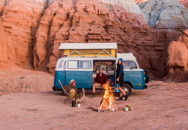 Mak y Owen viajan y trabajan a bordo de una camioneta Volkswagen del 85. Amantes de la naturaleza y de las aventuras, esta pareja ha recorrido más de 30 mil millas, visitado 21 estados de los Estados Unidos y pasado más de 400 días en carretera. Bound For Nowhere, es el blog en donde estos emprendedores comparten sus historias y recorridos.