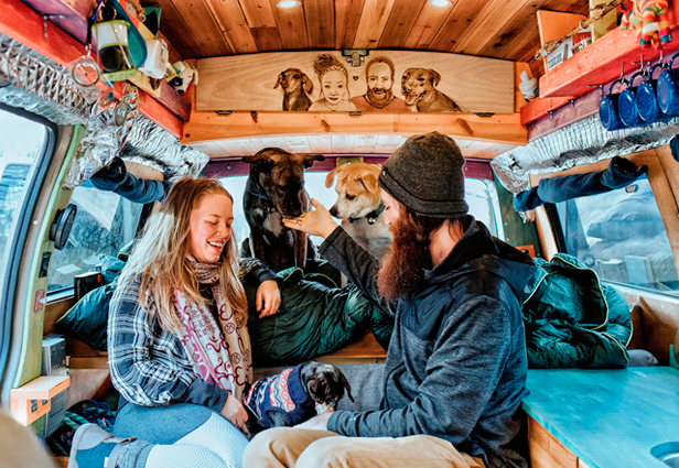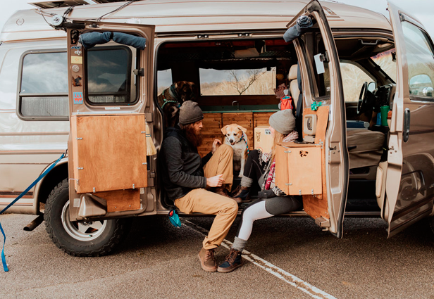 Al principio su idea era ir a diferentes campamentos o rentar a través de Airbnb, pero les atrajo más el hecho de vivir en una camioneta. John empezó con la adaptación de su vehículo y así fue como surgió Gnomad Home, el pequeño hogar que hoy comparten con sus 2 perritos: Nymeria y Crown.
